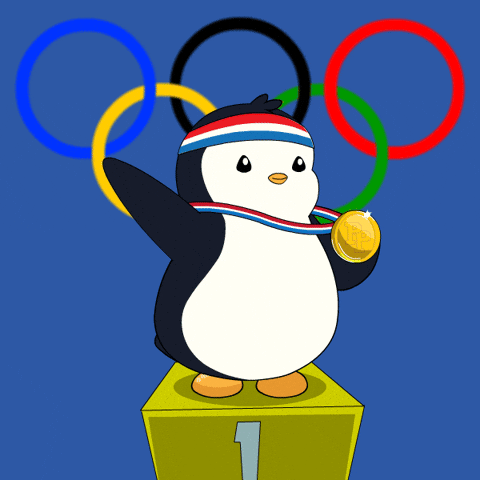 This GIF also stood out to me because of my love for the Olympics. I like this GIF because there are two different parts of the animation: (1) waving and (2) pointing at the medal. I think that was a creative combination of movements. This also caught my eye because part of the image is static (podium and Olympic rings) while the penguin is in motion, which I think adds a nice contrast to the GIF.