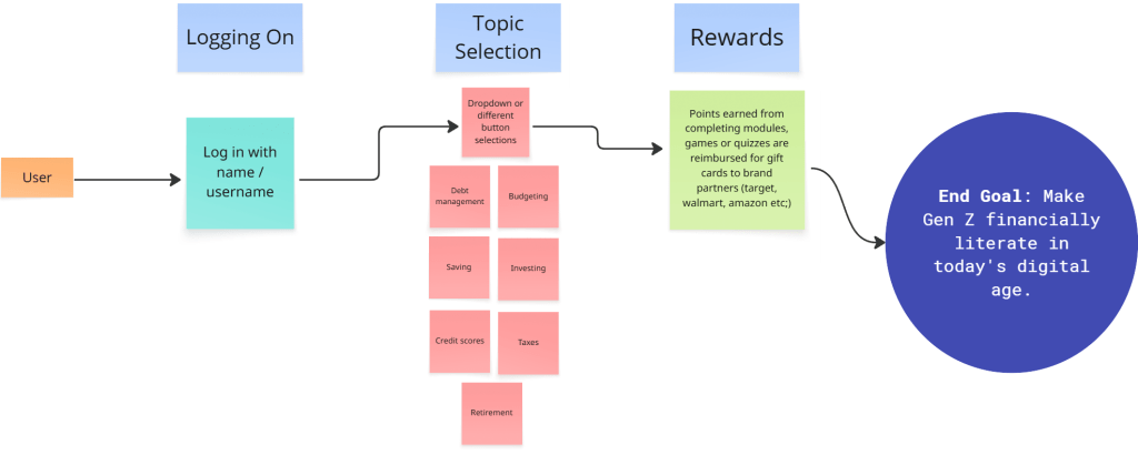 The problem we focused on was the lack of accessible, engaging financial management tools for Gen Z. To guide our ideation process, we created the following “How Might We” questions:
