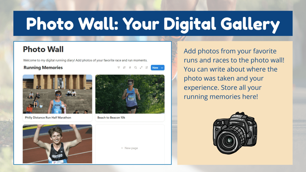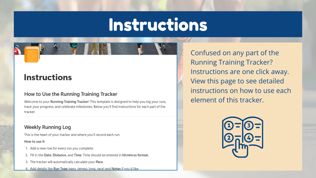 - Format & Layout: Explains how the tracker works, from the main dashboard to the linked pages for logging runs, adding photos, and tracking gear.