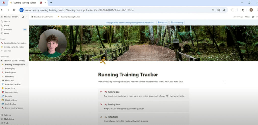 - About the Tracker: A quick summary describing it as a personal, customizable Notion dashboard for runners.