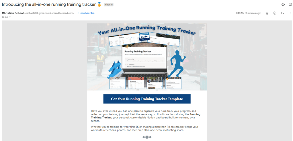 You can view the full sales page and explore the tracker here: Running Training Tracker on Gumroad.