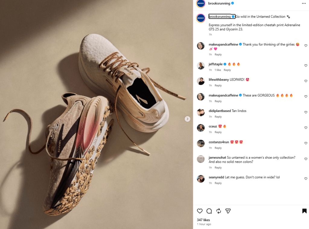 A great example of this is Brooks Running. They don’t follow the typical “grind and hustle” sports messaging. Instead, their voice is joyful, inclusive, and focused on the everyday runner. Check out their most recent Instagram post: