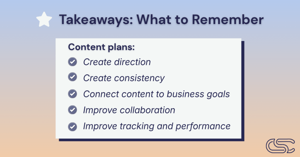 Here’s what a content plan helps you do: